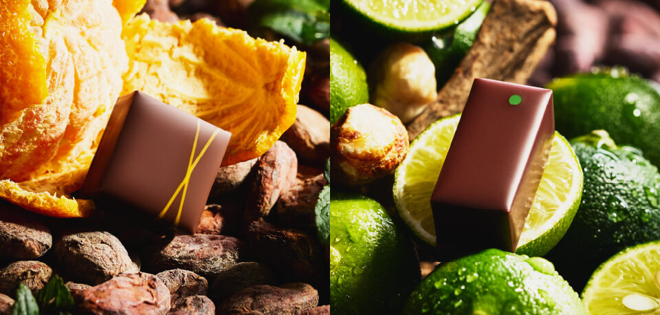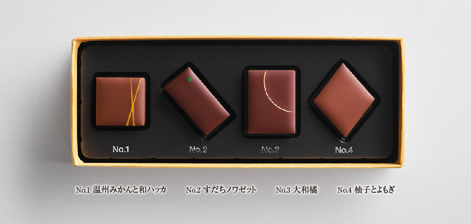 出品にあたって、日本各地の柑橘から4種類を選び抜き、それぞれの個性を最大限に生かしたオリジナルのボンボンショコラを創りました。