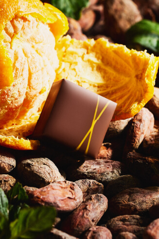 爽快で清涼感のある日本のハーブ”和ハッカ”のガナッシュと組み合わせることでみかんの優しい甘さと共にスッキリとした爽やかな香りが広がるショコラ。